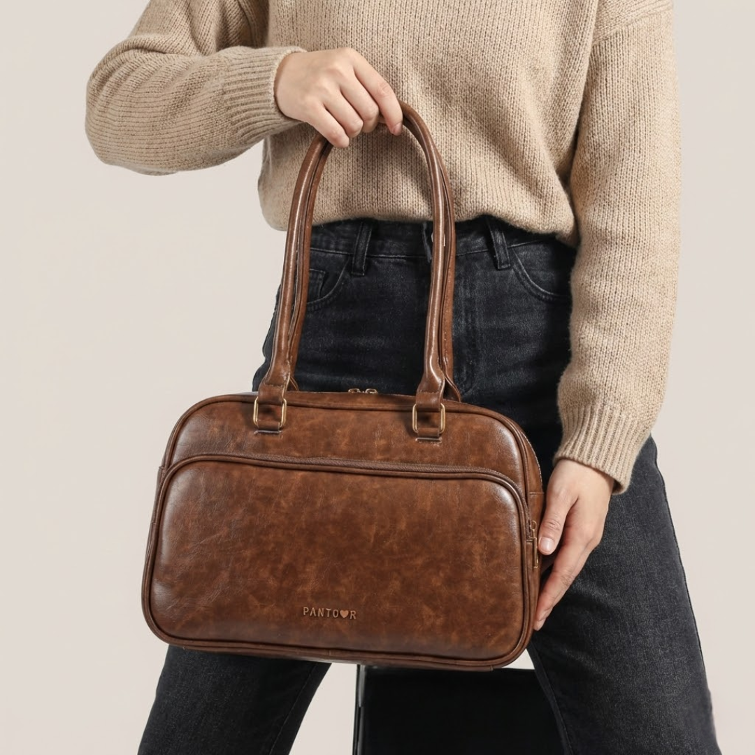 A structured bag with a wide base and rounded edges. Designed to carry more while keeping a clean, composed look.